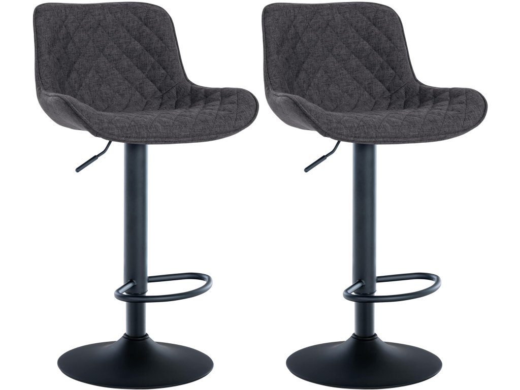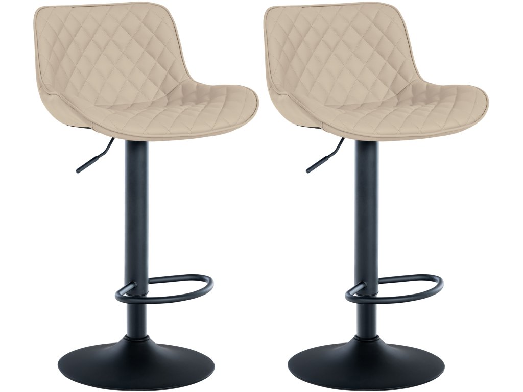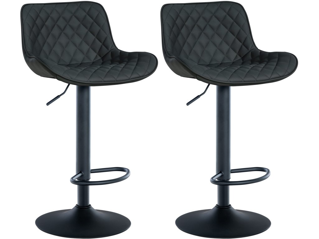 Prošívané švy na sedáku a opěradle dodávají židlím stylový vzhled. Rám umožňuje otáčení o 360 stupňů a výškové nastavení, zatímco robustní trubková základna zajišťuje bezpečné postavení.