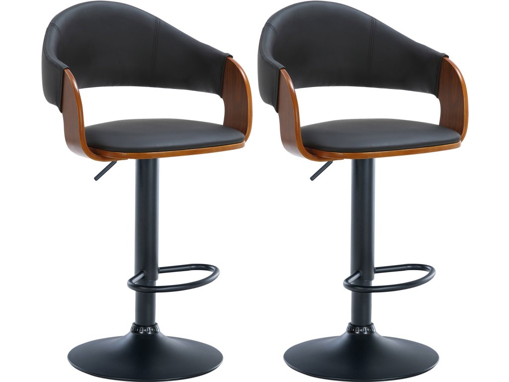 Sada 2 barových židlí Nilse v imitaci kůžeBarová židle Nilse v imitaci kůže kombinuje moderní design s maximálním pohodlím. Tato barová židle se skládá z robustního dřevěného rámu a čalouněného sedáku potaženého snadno udržovatelnou umělou kůží. Barová židle, kterou lze snadno výškově nastavit a otáčet o 360 stupňů, je ideální pro nalezení ideální polohy k sezení. Pro větší pohodlí má barová židle integrovanou opěrku nohou, která podporuje pohodlné a vzpřímené sezení. Chránič podlahy pod trubkovou základnou ochrání vaši podlahu před nevzhledným poškrábáním.