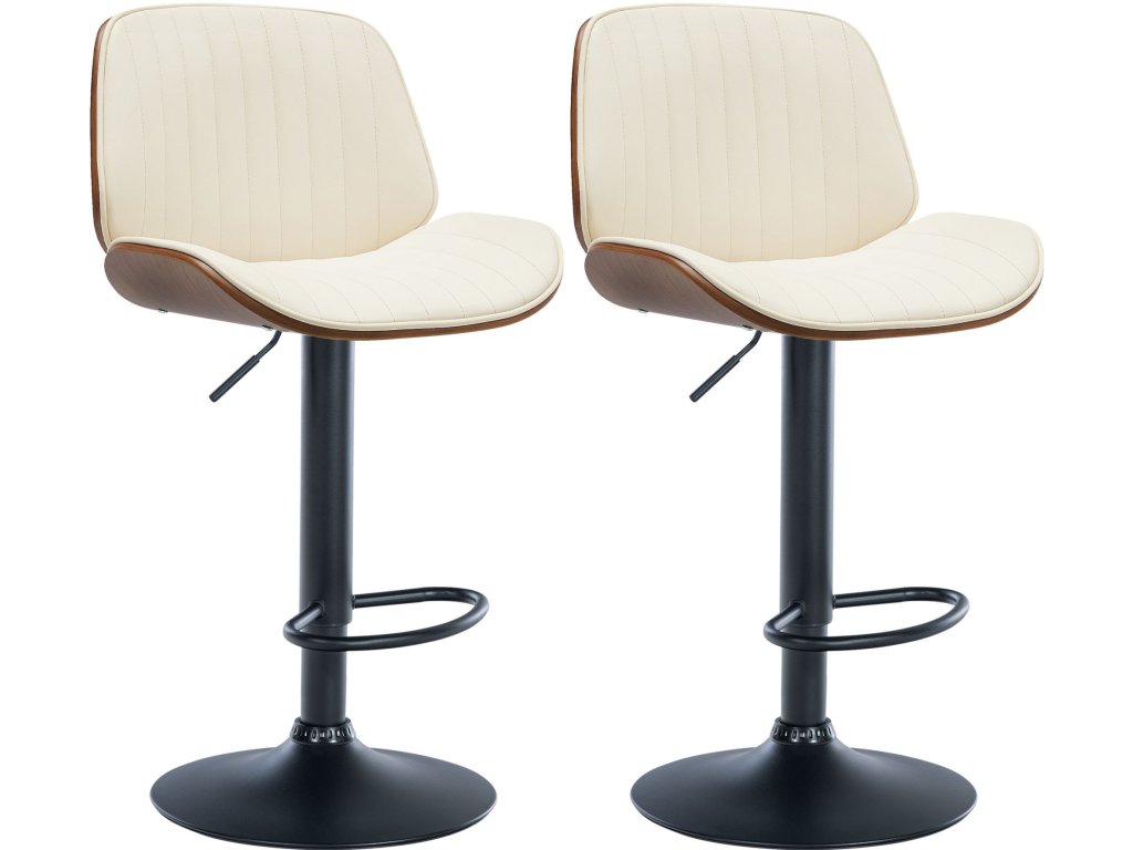 Sada 2 barových židlí Nova s potahem z umělé kůžeTyto barové židle Nova jsou ztělesněním nadčasové elegance a moderního pohodlí. Kombinace potahu z umělé kůže s ozdobným prošíváním a elegantního rámu z kvalitního ohýbaného dřeva činí z těchto stoliček vrchol.