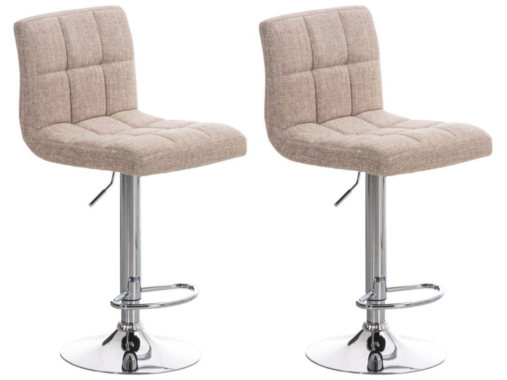 Sada 2 barových židlí Peru látkaSada 2 barových židlí Peru má velmi pohodlný čalouněný sedák a je vždy tou správnou volbou pro akce, soukromé použití a všude tam, kde se chcete pohodlně posadit. Stejně jako mnoho našich barových židlí je i tento model plynule výškově nastavitelný. Opěradlo, sedák otočný o 360° a ergonomická opěrka nohou zajišťují maximální pohodlí a umožňují pohodlné sezení i několik hodin v kuse. Sedák je potažený látkou a kovový rám v chromovém vzhledu se rychle a snadno čistí.