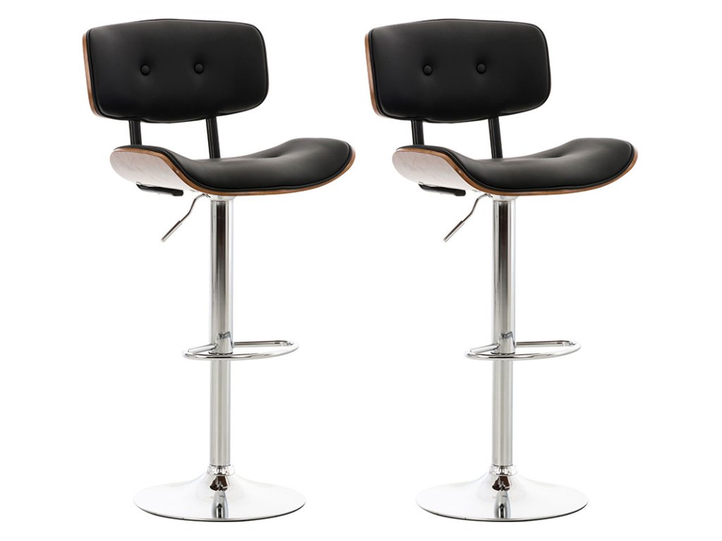 Barová židle Sarnia sada 2 kusůTato barová stolička dodá každému pultu elegantní vzhled. Vyznačuje se nejen prvotřídním komfortem sezení, který slibuje díky svému ergonomickému tvaru, ale také moderním designem. Zakřivený sedák a opěrák dřevěného sedáku jsou čalouněné a potažené imitací kůže. Ozdobné knoflíky na potahu dělají z barové židle naprostou atrakci pro oči. Rám je vyroben z kovu s chromovým vzhledem a snadno a rychle se čistí. Barová židle je plynule výškově nastavitelná pomocí plynového zdvihu. Opěradlo, sedák otočný o 360° a ergonomická opěrka nohou zajišťují maximální pohodlí při sezení a umožní vám pohodlně sedět i několik hodin v kuse.