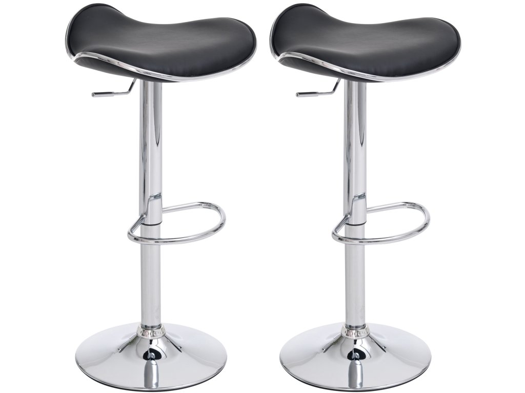 Sada 2 barových židlí ShanghaiSada barových židlí Shanghai zaujme svými měkkými křivkami a elegantním vzhledem. Je plynule výškově nastavitelná. Díky plynové zvedací páce je vhodná pro všechny výšky baru. Sedák a opěrku nohou lze otáčet o 360°. Kovový rám je kompletně pochromovaný. Sedák v imitaci kůže se snadno čistí. Pod podstavcem barové židle je navíc gumový kroužek. Souprava je proto šetrná k citlivým podlahám.