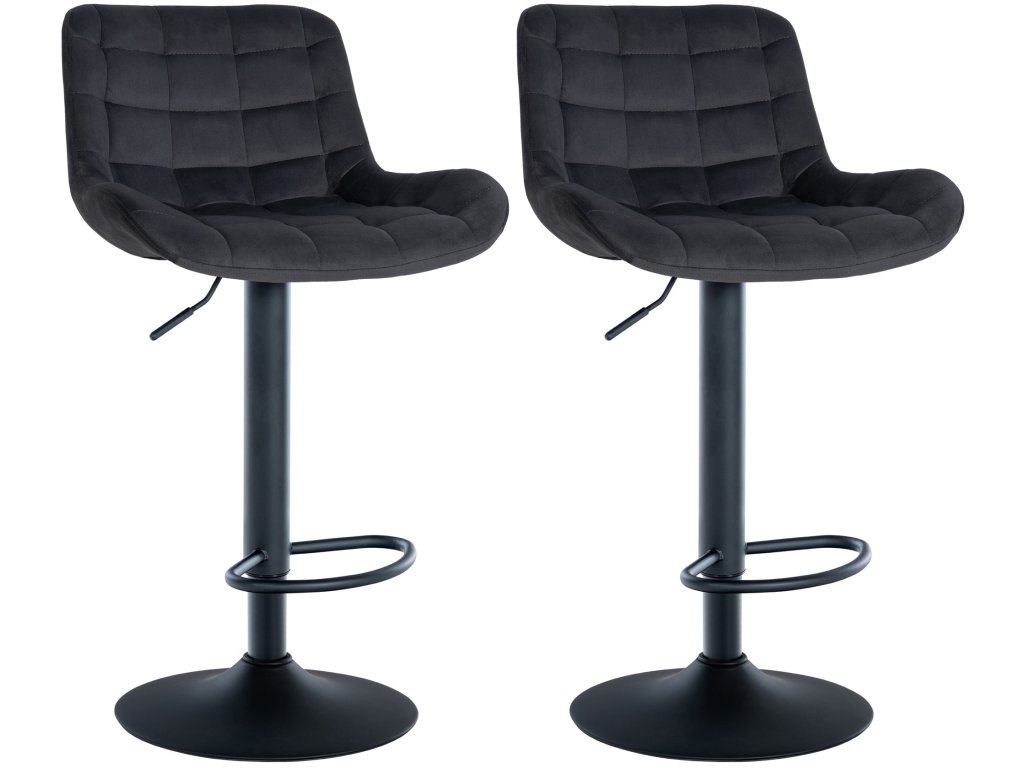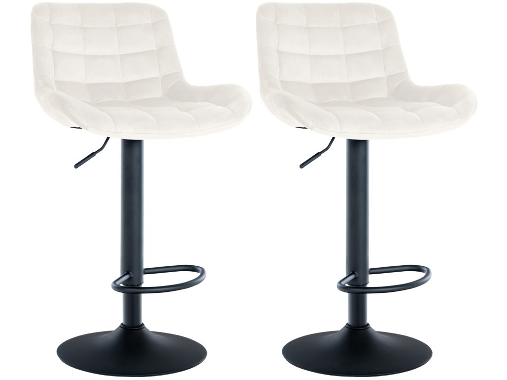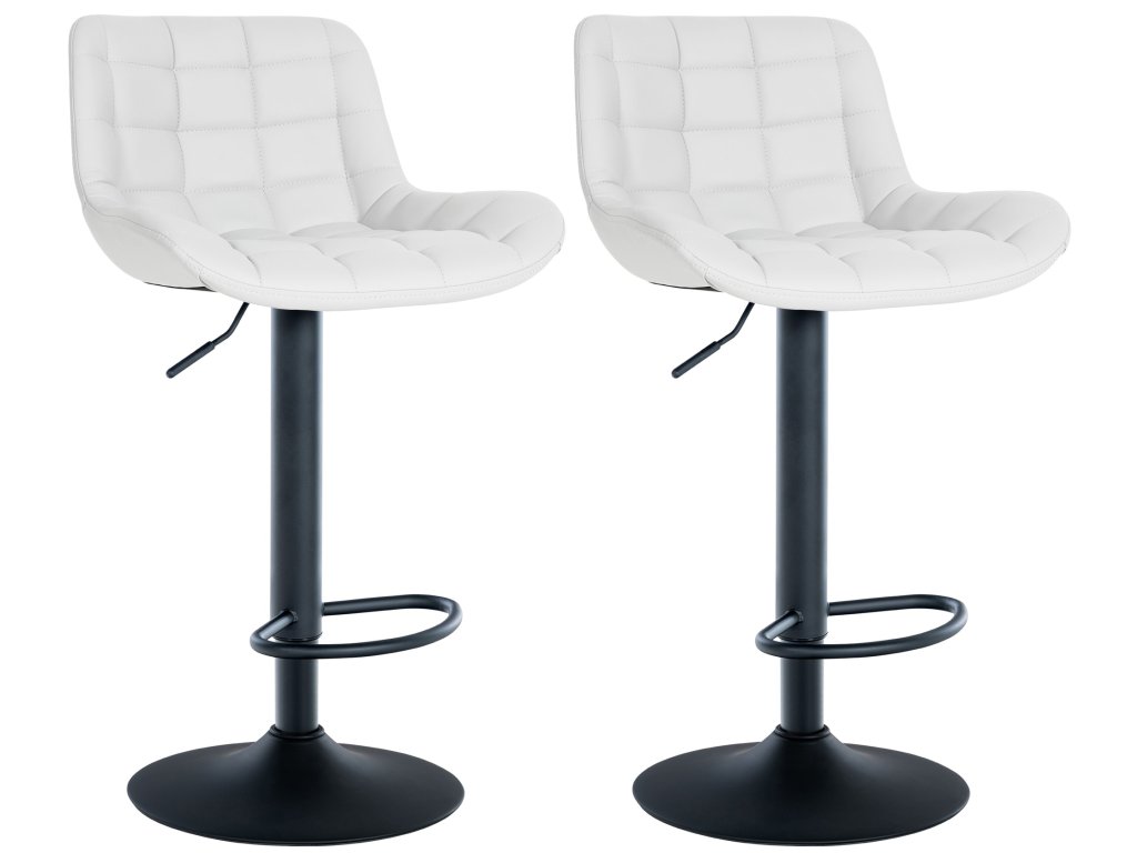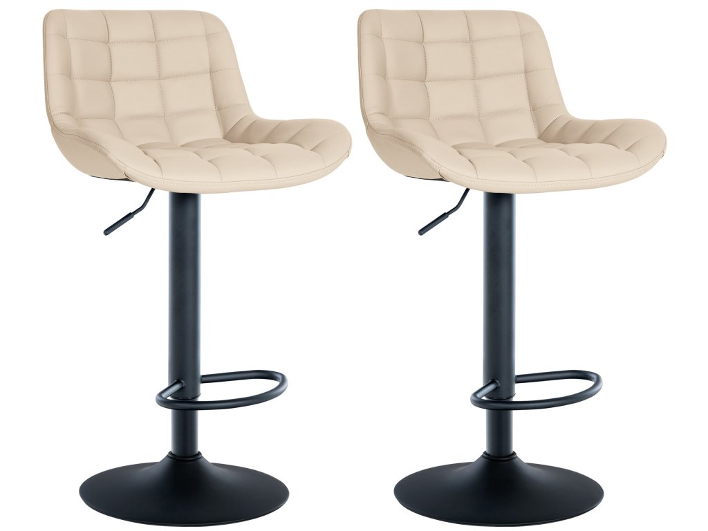 Díky kovovému rámu lze tyto barové stoličky otáčet o 360° a jsou také výškově nastavitelné, takže je lze přizpůsobit potřebám uživatele. Stabilní základna s opěrkou nohou a chrániči podlahy zajišťuje dodatečnou stabilitu a pohodlné sezení i po delší dobu.