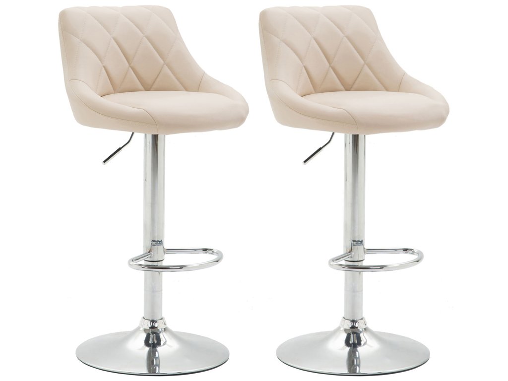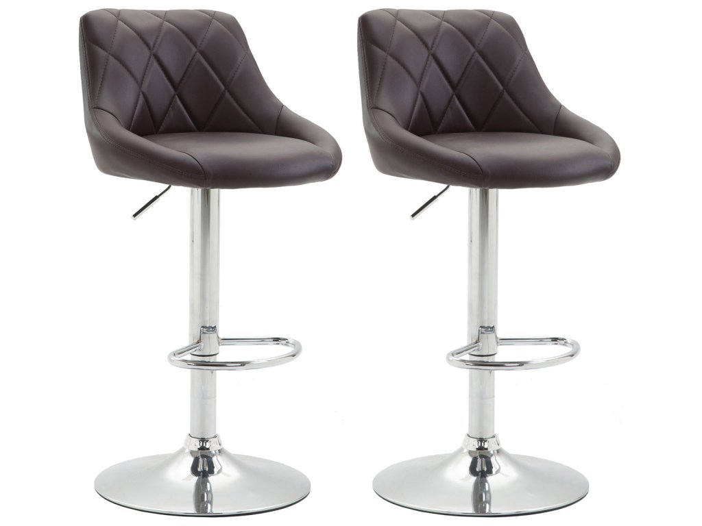 Sada 2 barových židlí LazioTato židle zaujme svým stylovým designem. Sedák je potažen imitací kůže a zakončen propracovaným ozdobným prošitím. Pomocí plynového zdvihu lze tento model plynule nastavit do požadované výšky, takže je ideální pro jakýkoli pult. Podnož, která zajišťuje vynikající pohodlí při sezení, lze nastavit synchronizovaně s výškou sedáku. Sedák lze spolu s podnožkou otáčet o 360°.