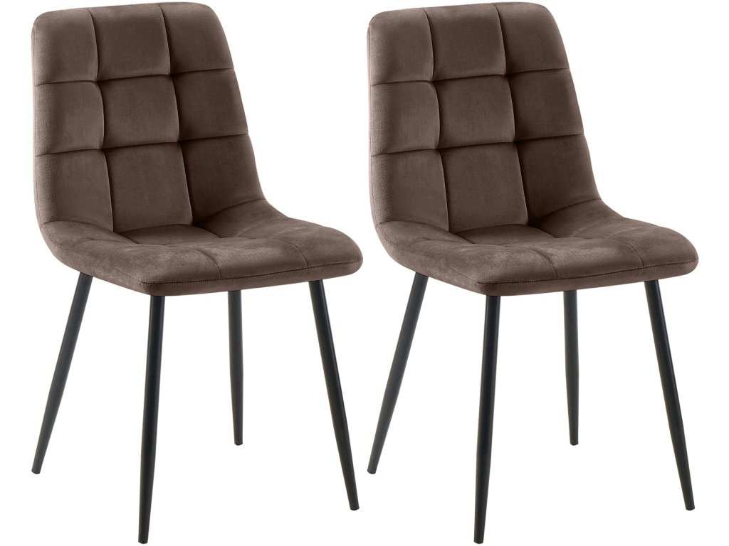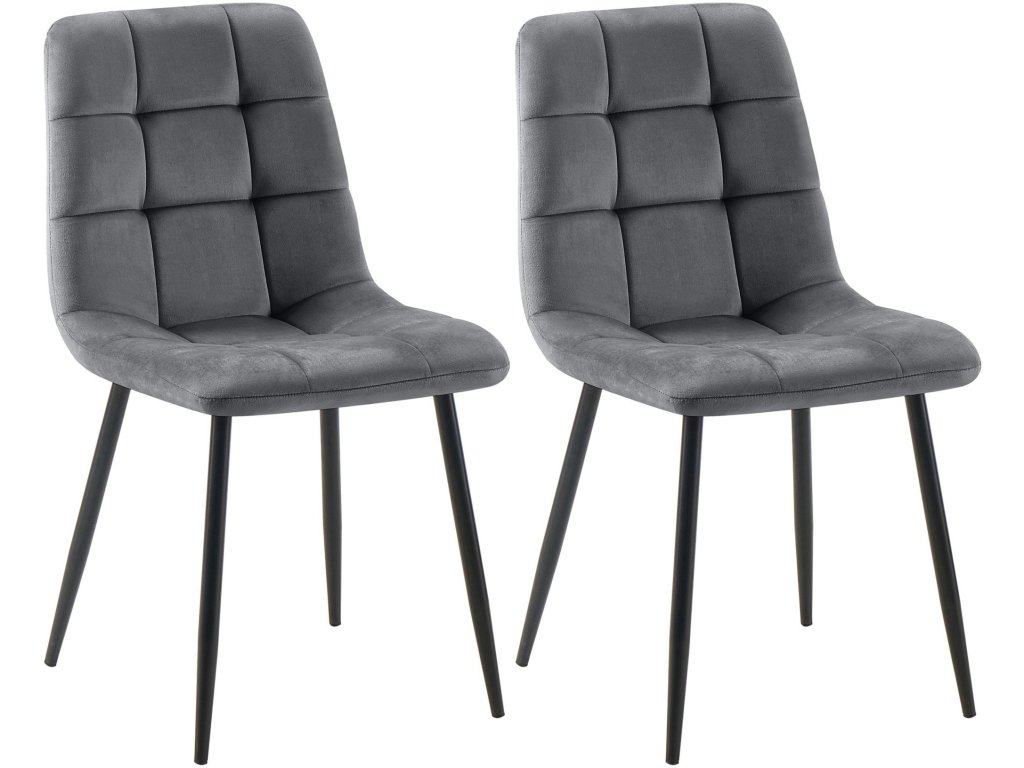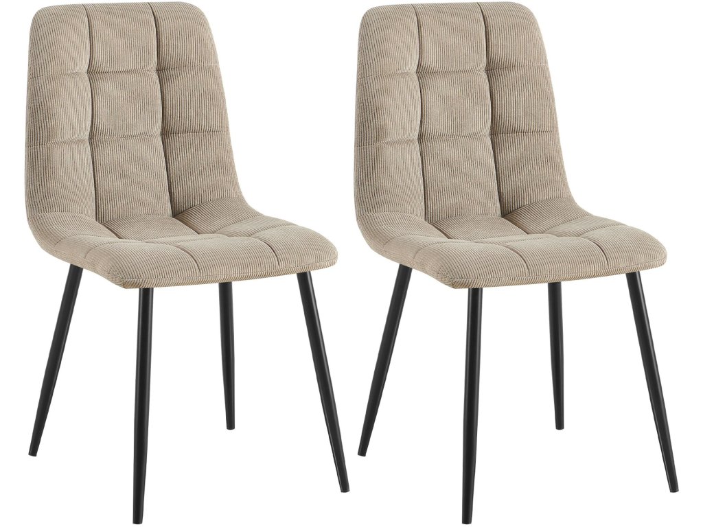 Útulná sada 2 jídelních židlí TildeJídelní židle Tilde pro 2 osoby vytváří útulnou atmosféru. Díky vysokým opěradlům a pohodlnému čalounění vybízí k pohodovému stolování. Odpovídající látkový nebo sametový potah sedáku můžete vybírat z řady vkusných barev. Moderní kovový rám se 4 nohami zajišťuje stabilitu Díky snadno udržovatelným povrchům se jídelní židličková souprava snadno čistí. Pod rámem jsou navíc připevněny chrániče podlahy, které zabraňují vzniku škrábanců a stop na podlaze.