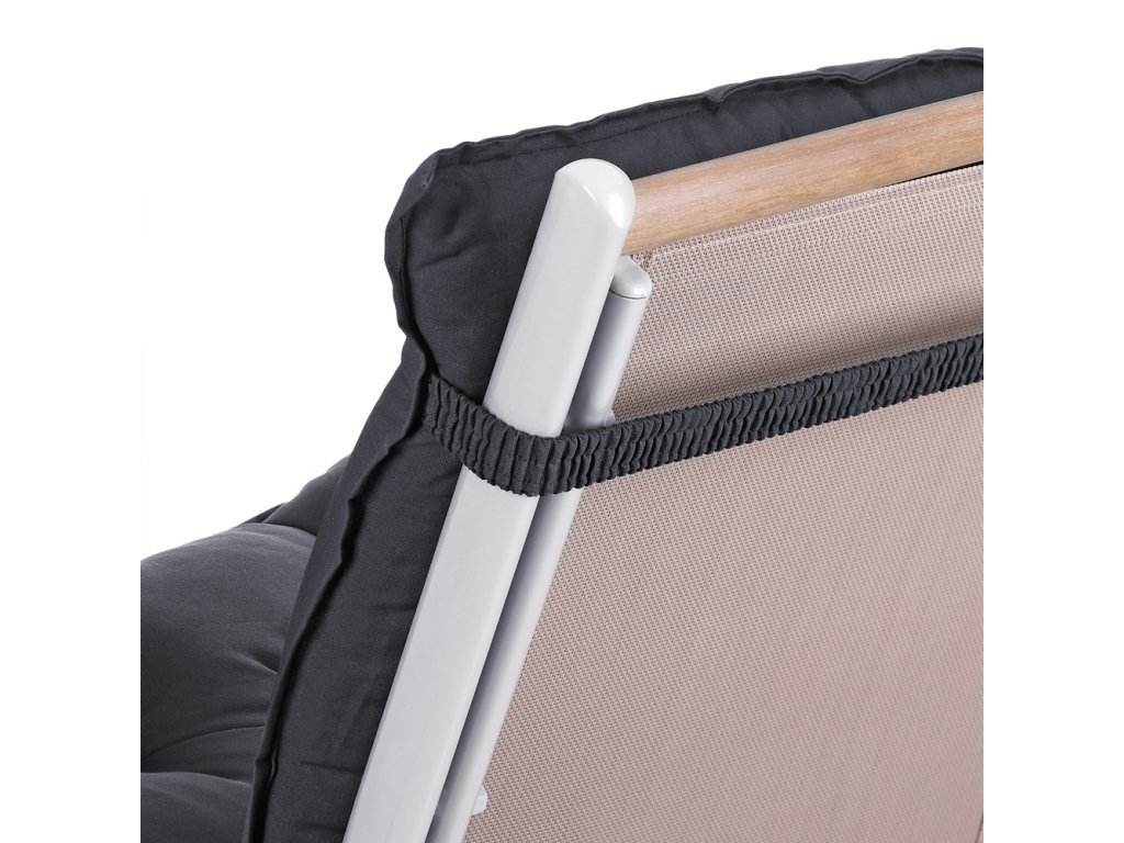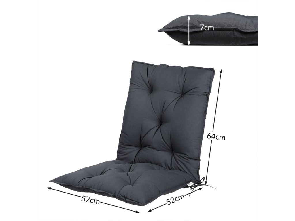 Díky upevňovacím páskům a zadnímu popruhu poduška perfektně drží na svém místě i při častém používání. Elegantní antracitová barva s jemným prošitím vytváří moderní vzhled, který skvěle ladí s různými typy zahradního i interiérového nábytku.