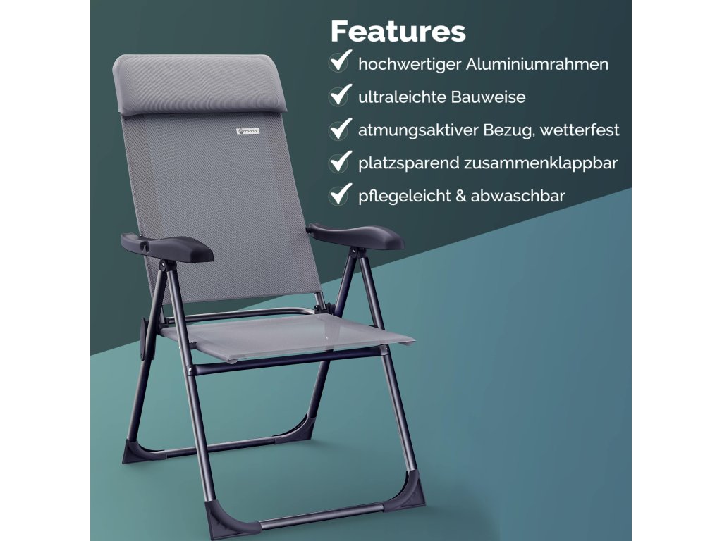 Sada 2 skládacích zahradních židlí CASARIA® v šedé barvě, s 7stupňově nastavitelným opěradlem a lehkým hliníkovým rámem