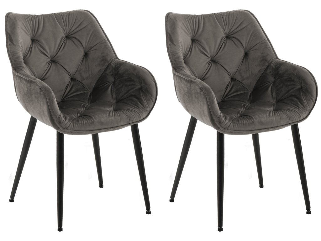 Sada 2 sametových židlí TannaSada 2 sametových židlí Tanna v sobě spojuje smysl pro styl a pohodlí při sezení. Sedáky ve tvaru křesla zaujmou svým moderním vzhledem a pohodlím, které umožňují celočalouněné zvýšené područky a čalouněné opěráky. Moderní kovová základna se 4 nohami dodává soupravě potřebnou stabilitu, zatímco chrániče podlahy pod nohami zabraňují poškrábání a vzniku stop na podlaze. Díky použití snadno udržovatelných materiálů je čištění každé jídelní židle snadné a rychlé.