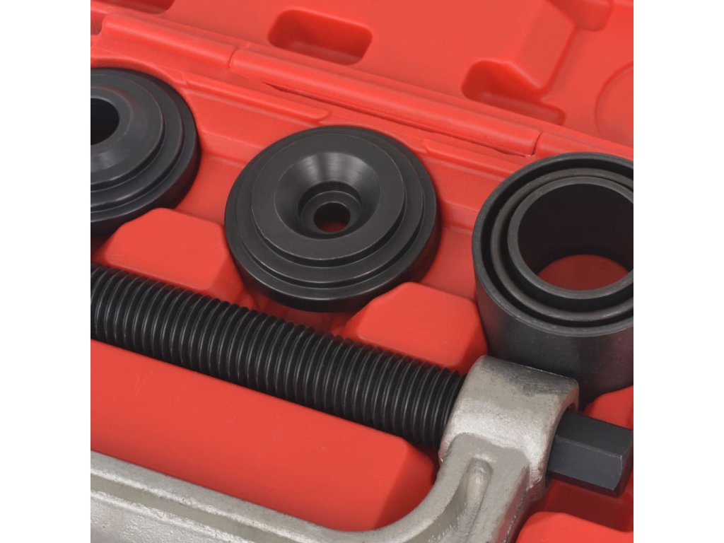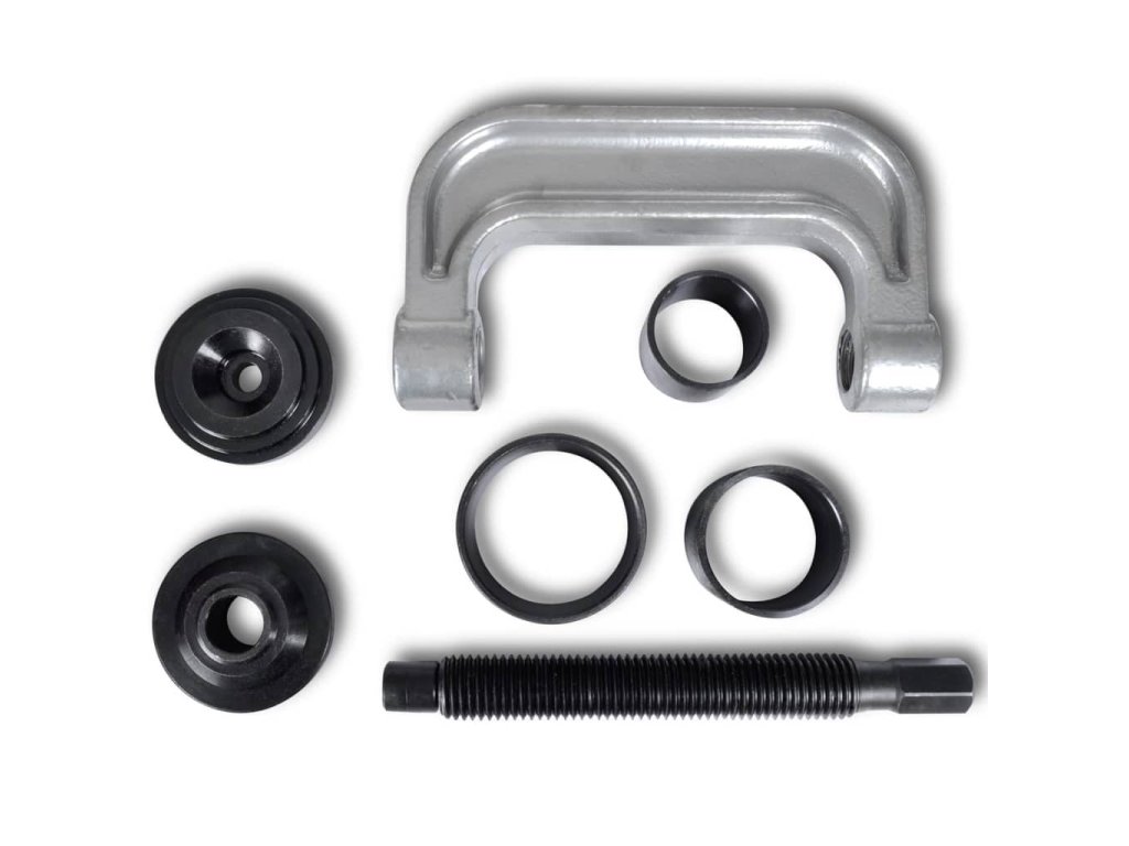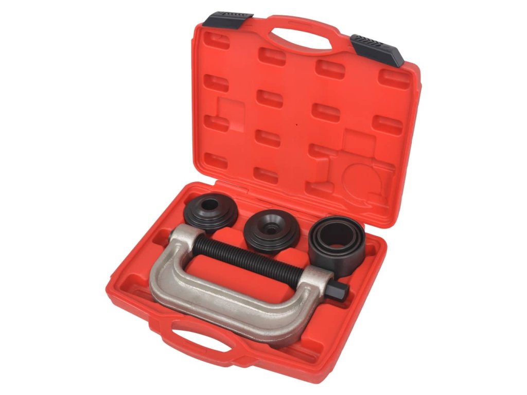 Tato servisní sada na kulové čepy se stahovákem a spojkou C je perfektní pro odstranění a instalaci součástí, jako jsou kulové klouby, univerzální klouby nebo brzdové kotouče. Je také perfektní pro odstranění zkorodovaných a zrezivělých částí.