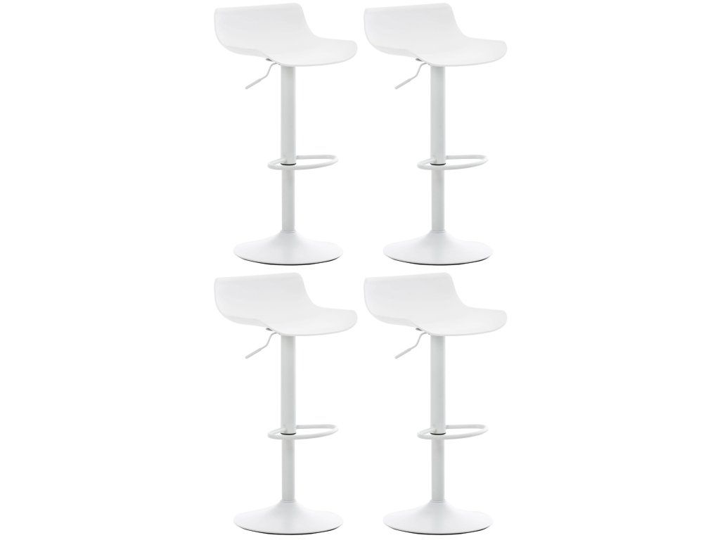 Sada 4 barových židlí AveiroBarová židle Aveiro se skládá ze zakřiveného plastového sedáku, který nabízí příjemný komfort sezení. Barová židle je výškově nastavitelná pomocí plynového zdvihu a sedák lze otáčet o 360°, takže jej lze nastavit do libovolné polohy k sezení. Trubková základna na podlaze dodává barové stoličce potřebnou stabilitu. Integrovaná opěrka nohou, kterou lze nastavit synchronně s výškou sedáku, přispívá k pohodlnému sezení a umožňuje sedět pohodlně i několik hodin.