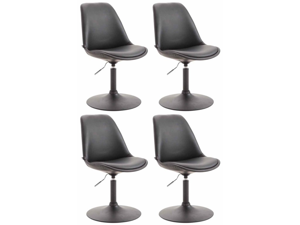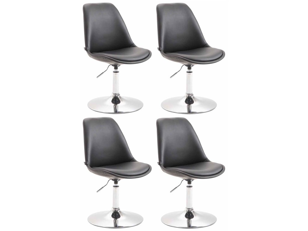 Sada 4 jídelních židlí Maverick z umělé kůže - Moderní design v kombinaci s pohodlím!Židle Maverick jsou pohodlné a stylové sezení pro každodenní použití. Skořepina sedáku je potažena imitací kůže a je čalouněná v oblasti sedáku a opěradla, což usnadňuje pohodlné sezení po dlouhou dobu. Model je výškově nastavitelný a pro větší flexibilitu jej lze otáčet o 360°. Kovová trubková podnož v chromovém vzhledu nebo v matném černobílém kovu stojí za vysokou stabilitou a odolností. Tyto čalouněné židle dodávají moderní šmrnc a skvěle doplní každé obytné prostředí.