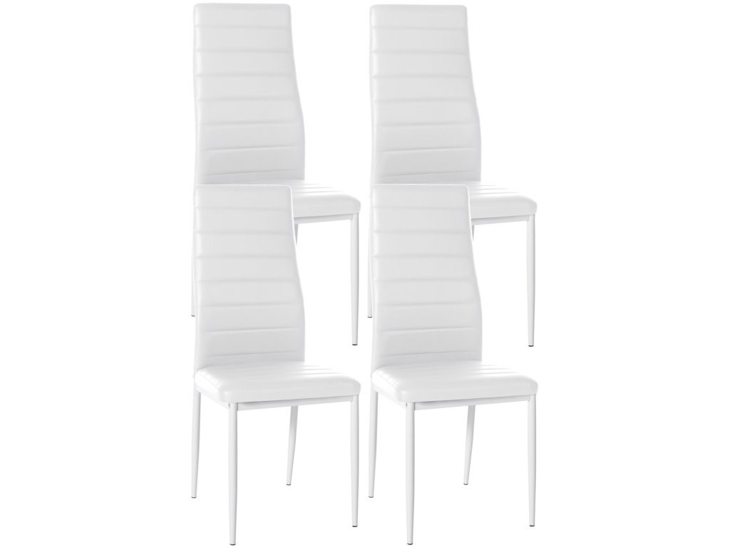 Sada 4 jídelních židlí MayfairSada 4 jídelních židlí Mayfair se sametovým nebo koženkovým čalouněním je dokonalým doplňkem moderních, útulných interiérů a v každé místnosti zaujme. Vysoké opěradlo a příjemné a pohodlné čalounění umožňují pohodlné sezení po dlouhou dobu. Toto křeslo je stabilní a stojí na čtyřnohém kovovém rámu. Je vybaveno chrániči podlahy pod nohama, které zabraňují poškrábání a poškození podlahy. Jídelní židle se navíc díky snadno udržovatelným materiálům kdykoli rychle a snadno vyčistí.