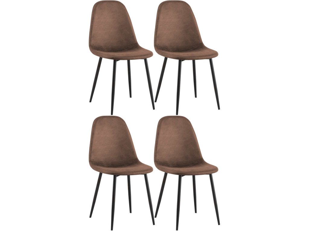 Sada 4 jídelních židlí Napier vhodná pro rodinySada 4 jídelních židlí Napier vhodná pro rodiny je navržena pro vkusné pohodlí při sezení. Díky vysokým opěradlům a příjemnému, pohodlnému čalounění zve k útulným setkáním. Díky snadno udržovatelným materiálům ze sametu, látky nebo imitace kůže se jídelní sada židlí rychle a snadno čistí. Pod nohami moderního kovového rámu se 4 nohami jsou chrániče podlahy, které zabraňují jejímu poškrábání. Elegantní sedací souprava je k dispozici v hnědé, šedé, modré, krémové, oranžové, fialové, světle šedé, tmavě šedé, taupe, růžové, zelené nebo černé barvě.