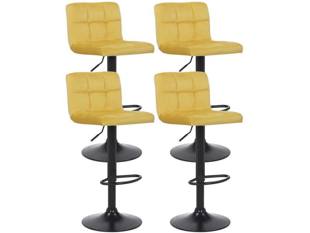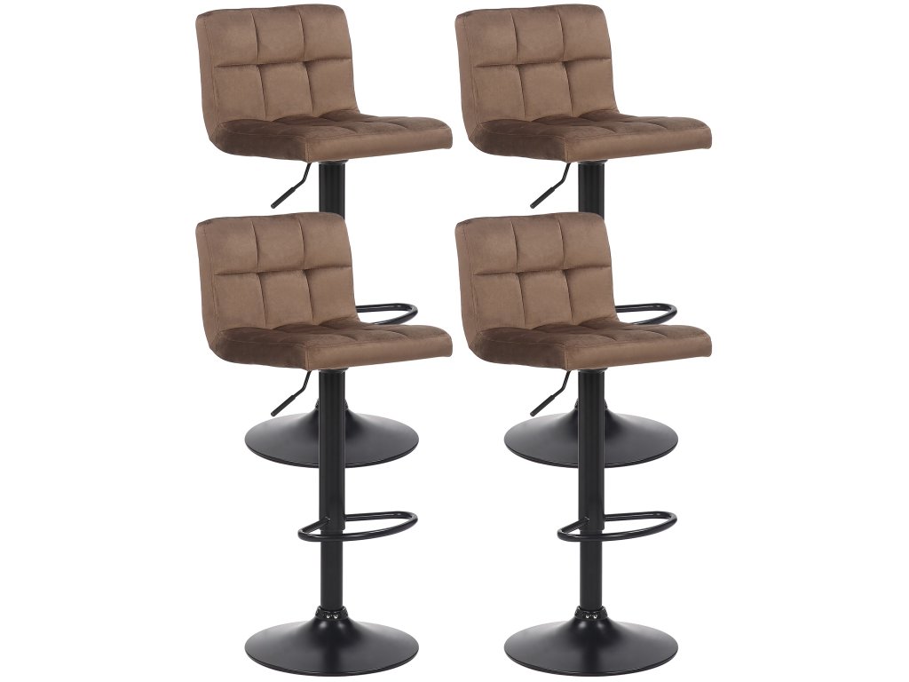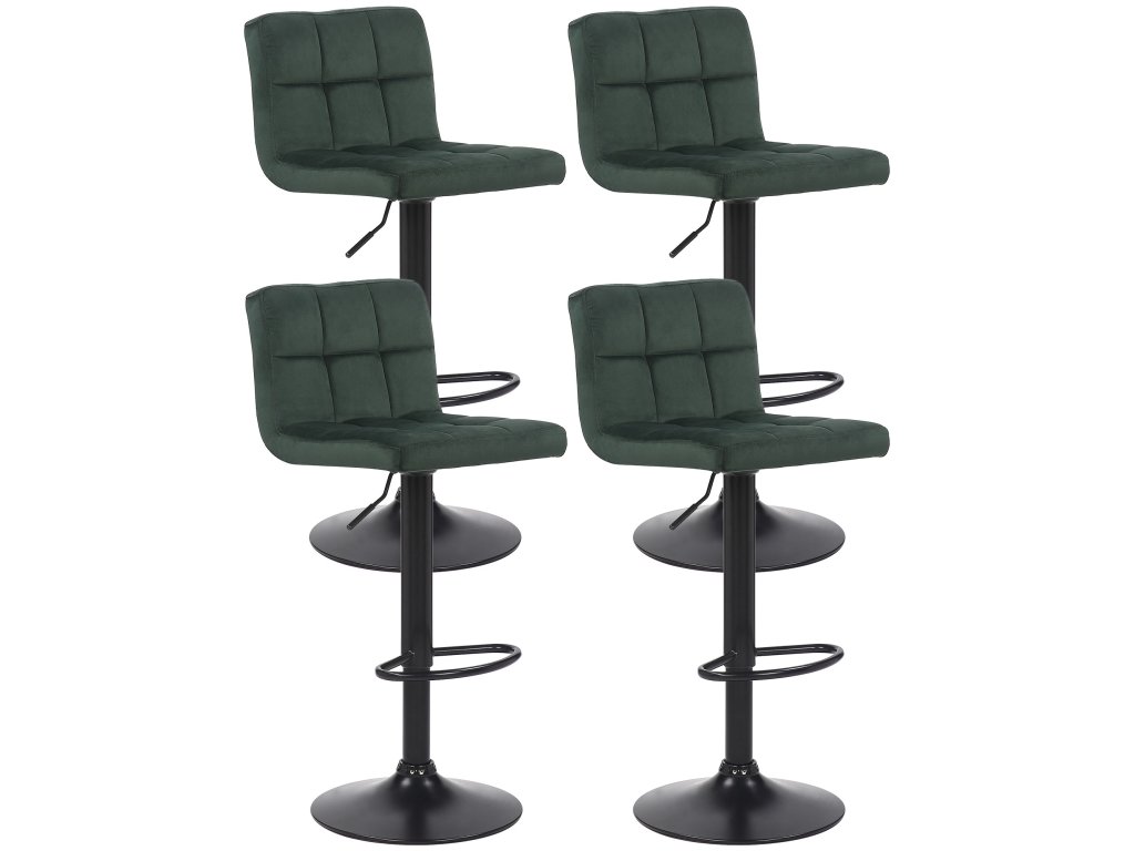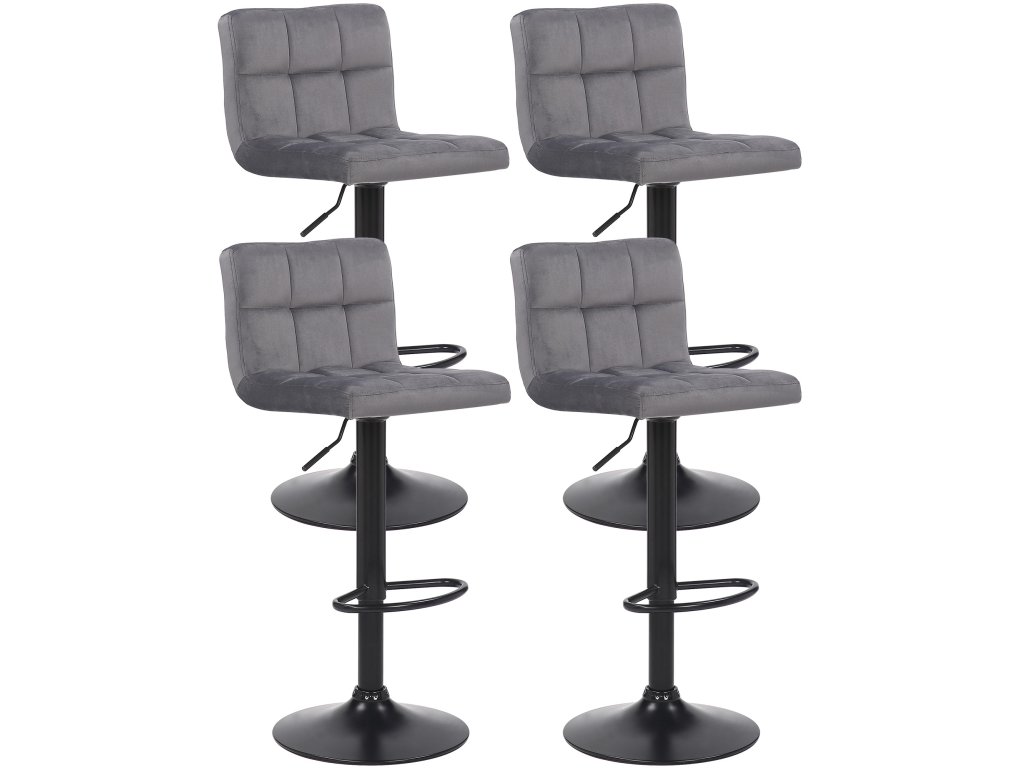 Sada 4 sametových barových židlí FeniTyto moderní barové židle se vyznačují nadčasově elegantním designem. Krásně tvarované sedáky slibují fantastický zážitek ze sezení, protože čalouněné opěrky poskytují vašim zádům potřebnou oporu, abyste mohli pohodlně a příjemně sedět celé hodiny. Sedáky jsou čalouněné sametem, který se snadno udržuje, a kovové rámy s trubkovými nožkami nabízejí velmi vysokou stabilitu. Díky možnosti výběru barev si můžete vybrat tu správnou barovou židli do jakéhokoli obytného prostředí. Zakřivené podnožky zabraňují poklesu nohou. Výška barových židlí je plynule nastavitelná pomocí plynového zvedáku a sedáky lze otáčet o 360°, takže se hodí do každého baru.