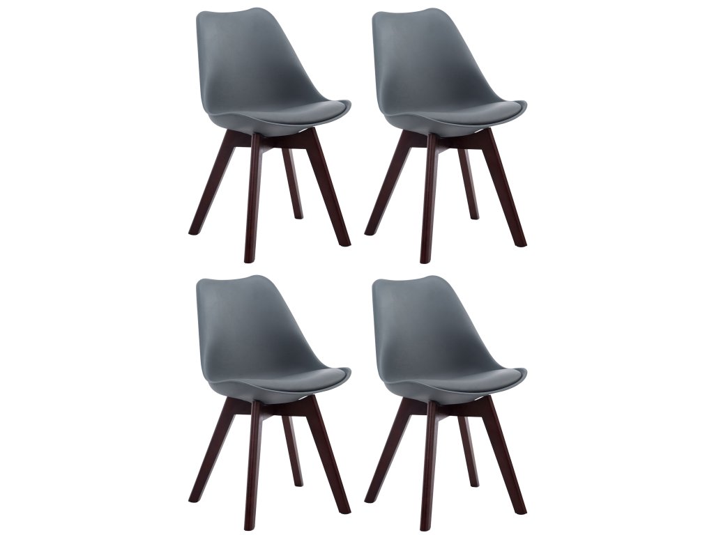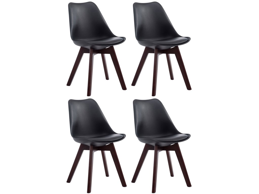 Sada 4 židlí BorneoTyto jídelní židle propůjčí každé místnosti exkluzivní vzhled. Pohodlné židle zaujmou nejen svými vynikajícími sedacími vlastnostmi, ale také zajímavou kombinací plastu, imitace kůže a dřeva. Skořepina sedáku je vyrobena z odolného plastu. Příjemné a pohodlné čalounění s potahem z imitace kůže umožňuje pohodlné sezení i po dlouhou dobu. Na čtyřnohém podstavci z bukového nebo dubového dřeva vypadají tyto židle pro návštěvy jednoduše dobře při každé příležitosti. Tento model je to pravé, pokud máte rádi moderní nábytek.