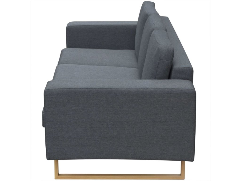 Pohovky má širokou sedací plochu a tlustě polstrované matrace pro maximální pohodlí při sezení. Jsou čalouněné vysoce kvalitním textilem, který je zároveň velmi rezistentní. Potahy matrací se snadno udržují v čistotě, protože se dají sejmout a vyprat v pračce. Pevné dřevěné rámy a železné nohy s dekorativním vzhledem struktury dřeva přispívají k jejich robustní konstrukci.
