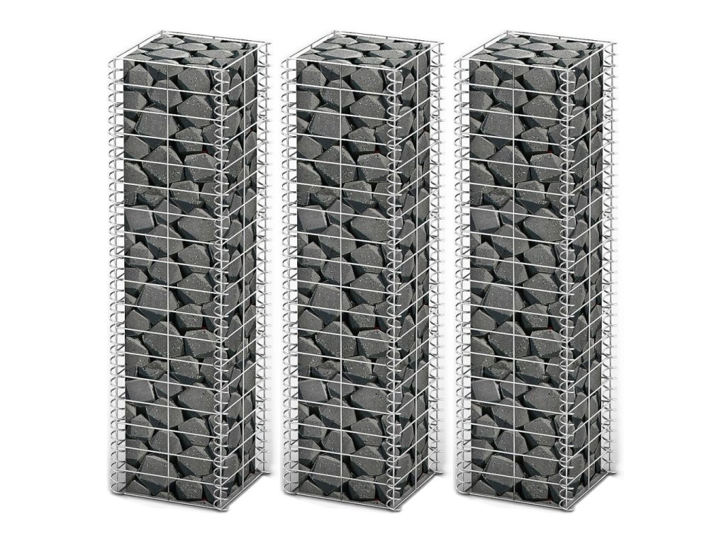 Sada gabionů 3 ks pozinkovaný drát 25 x 25 x 100 cm 141045