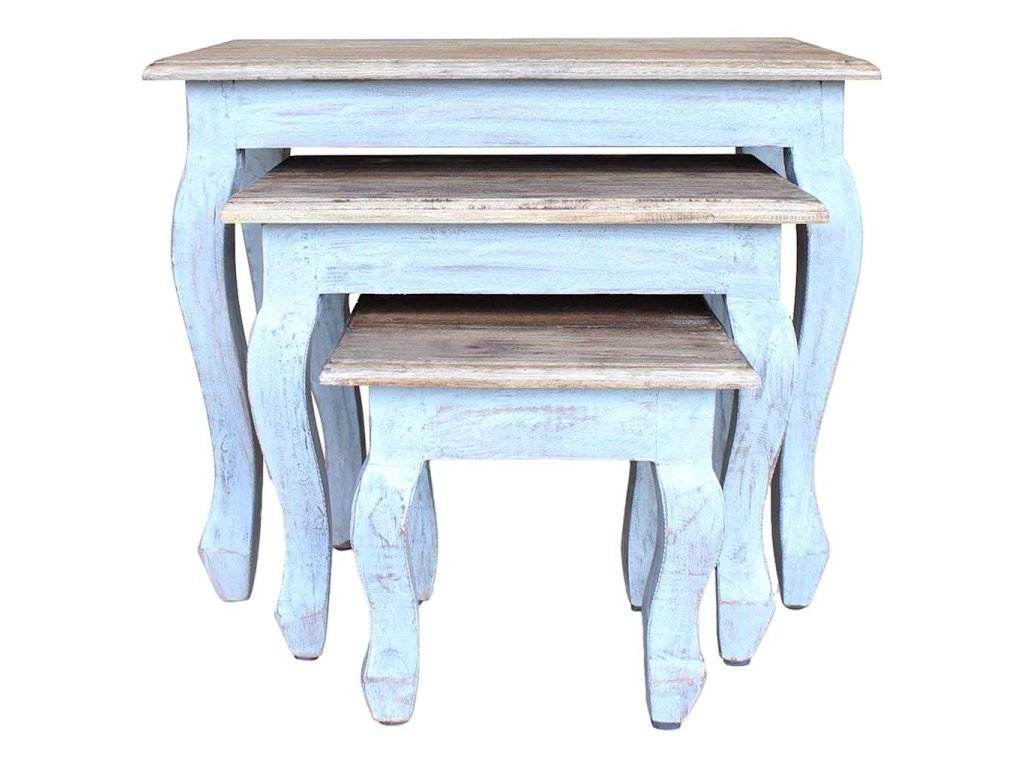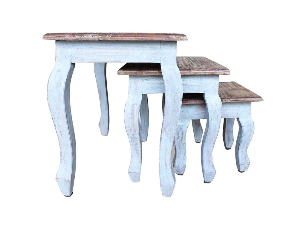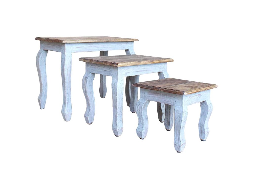 Každému kroku rukodělné výroby je věnována náležitá péče. Balení obsahuje 3 hnízdové stolky různých velikostí.