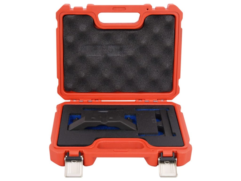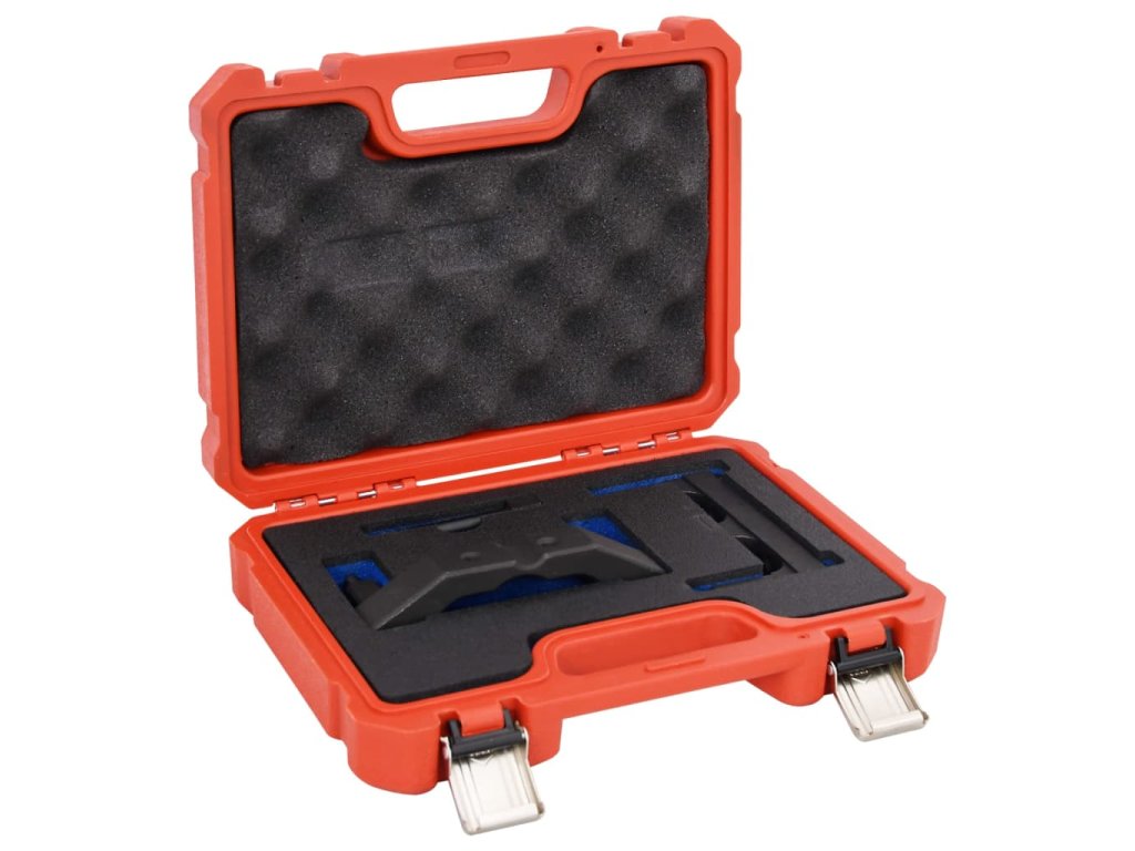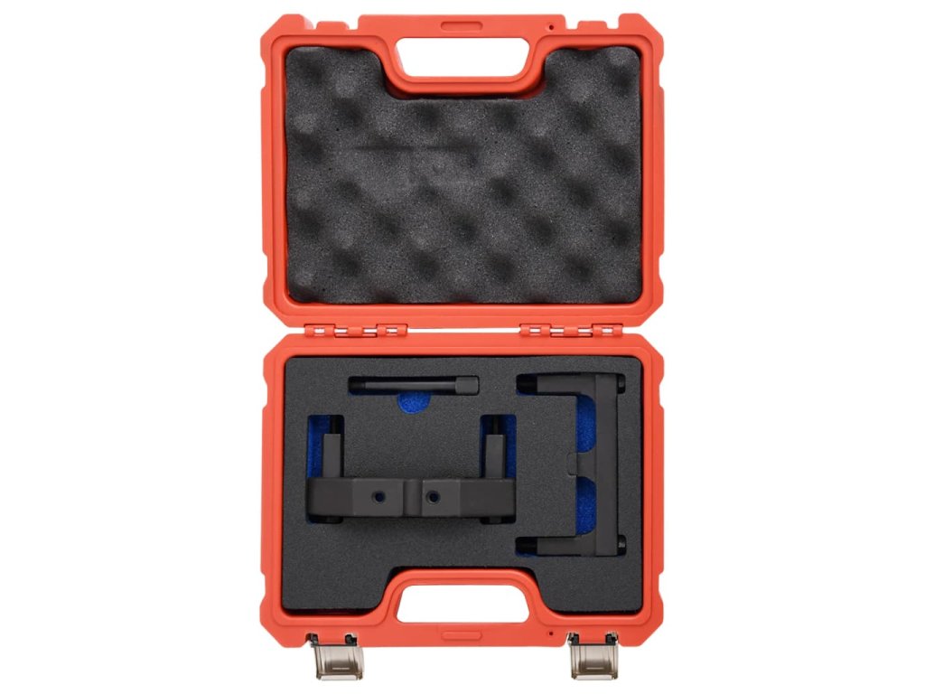 Sada nástrojů pro časování motoru obsahuje přípravky k aretaci vačkové hřídele při nastavování časování. Celý set je uspořádán v odolném kufříku, takže se snadno skladuje i přepravuje.