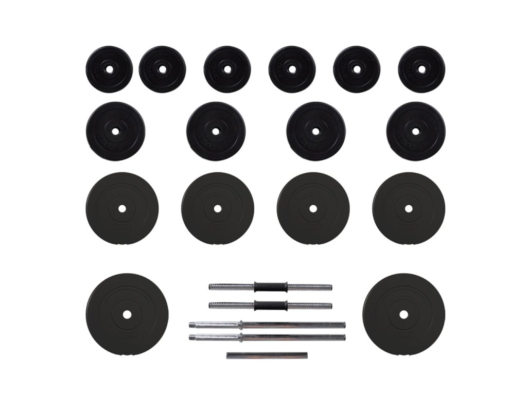 - Hmotnost kotoučů: 2x 10 kg, 4x 5 kg, 6x 1,25 kg, 4x 2,5 kg