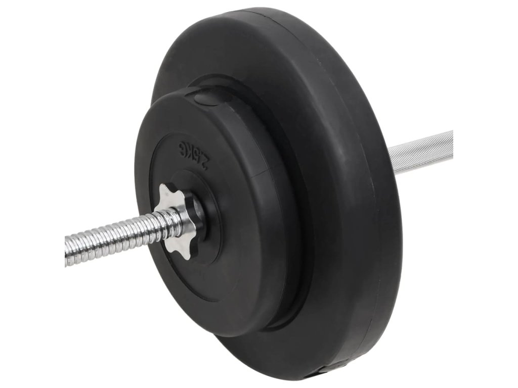 - Hmotnost kotoučů: 4x 2,5 kg, 6x 1,25 kg, 2x 10 kg, 2x 5 kg
