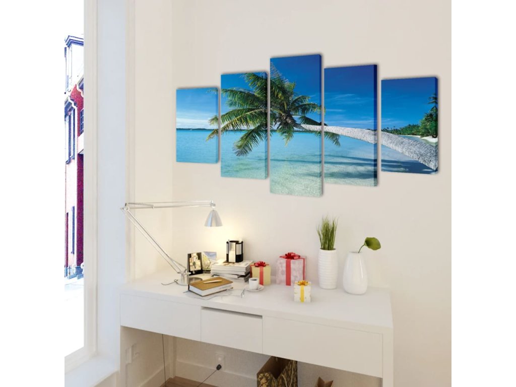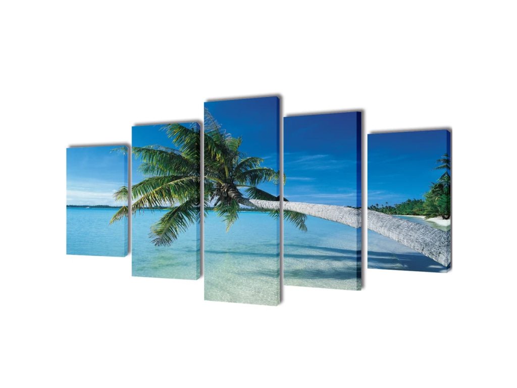 Sada obrazů, tisk na plátně, písečná pláž s palmou, 200 x 100 cm 241561