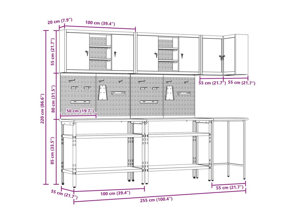 - Doporučené použití: Tato skříňka je perfektní pro vnitřní použití, ideální pro dílny, kde je pořádí a efektivita důležitá. Ať už je váš pracovní prostor profesionální nebo domácí, usnadní vám přehledné uložení nářadí, což zlepší přístupnost i produktivitu.