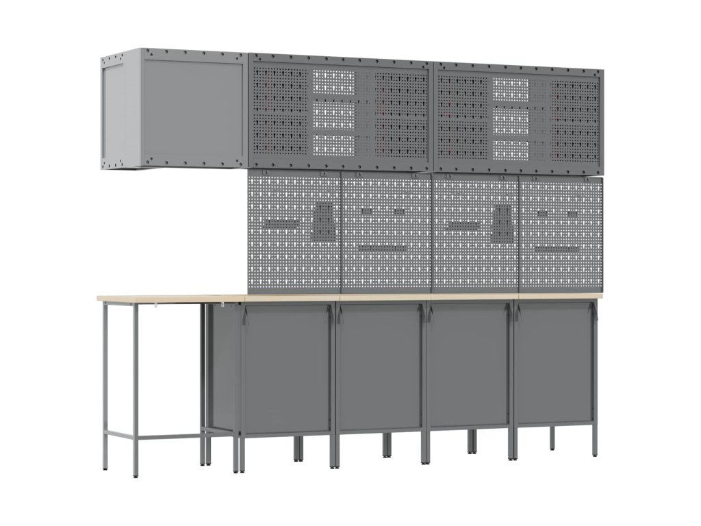 - Funkce / Design: Její moderní design se zaměřuje na jednoduchost a funkčnost, takže se snadno vejde do různých stylů dílen. Čisté linie a minimální ozdoby dávají skříňce sofistikovaný vzhled a praktický prostor na ukládání nářadí. Nastavitelné nohy umožňují přizpůsobení podle vašich potřeb.