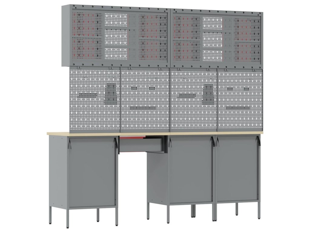 - Doporučené použití: Tenhle kabinetový systém se hodí pro dílny a zdravě vyhovuje jak kutily, tak profesionálům, kteří potřebují uložit nástroje, manuály a další věci přehledným způsobem.