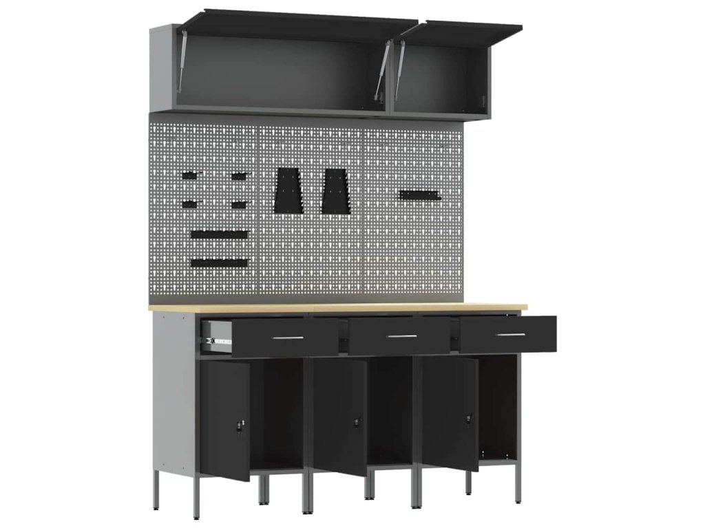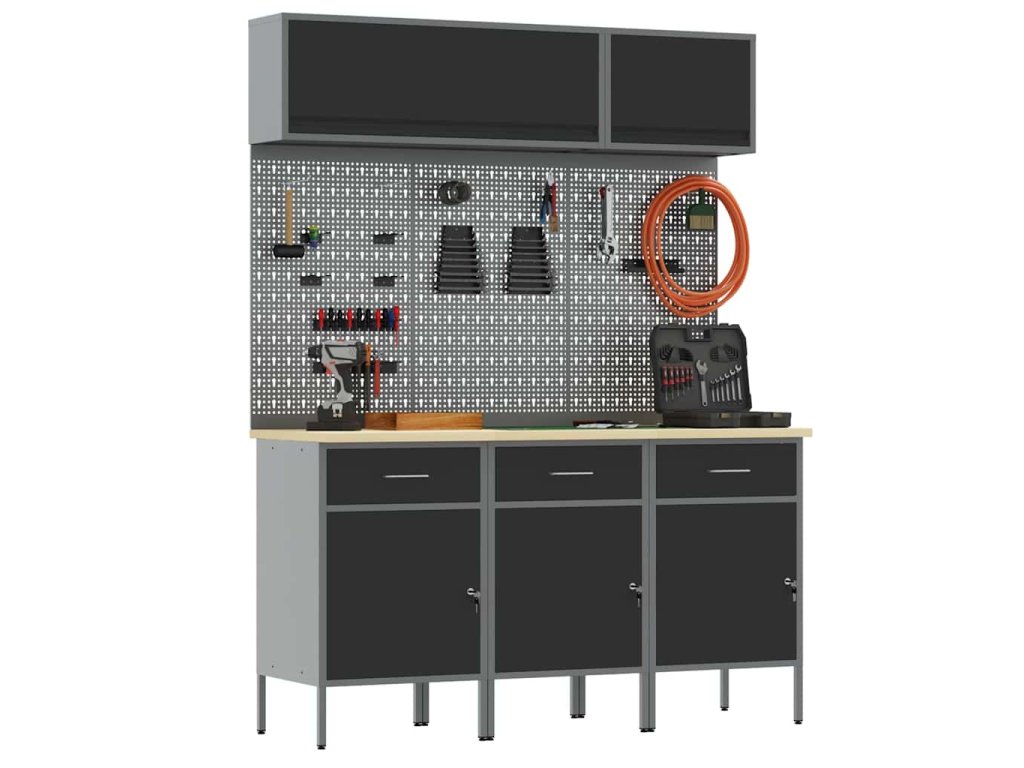 - Doporučené použití: Tenhle kabinetový systém se hodí pro dílny a zdravě vyhovuje jak kutily, tak profesionálům, kteří potřebují uložit nástroje, manuály a další věci přehledným způsobem.