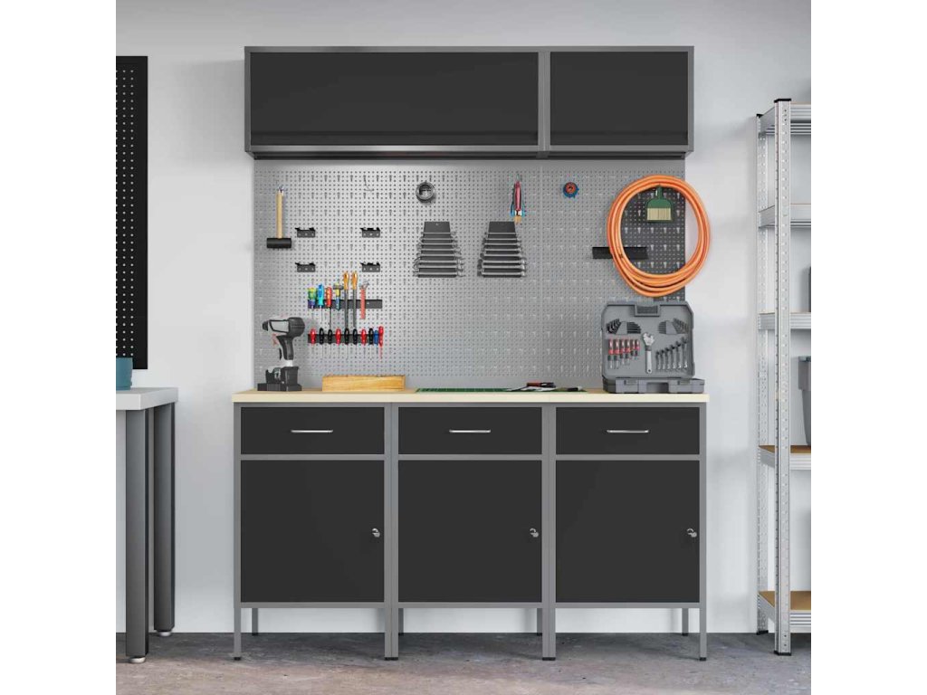 Sada pracovní skříně se zásuvkou s úložištěm 8 pcs Černá 3321432