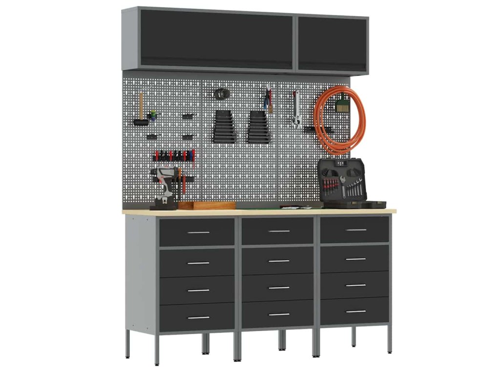 Tento odolný kabinetový set spojuje funkčnost s atraktivitou a přináší jak užitek, tak i estetiku do každé dílny. S elegantním obdélníkovým tvarem a moderním stylem se hodí jak pro nadšence, tak pro profíky, kteří ocení přehledné a uspořádané prostředí. Jeho efektivní struktura se snadno používá, což je ideální pro organizaci nástrojů a zachovává při tom čistý vzhled pracovní plochy.