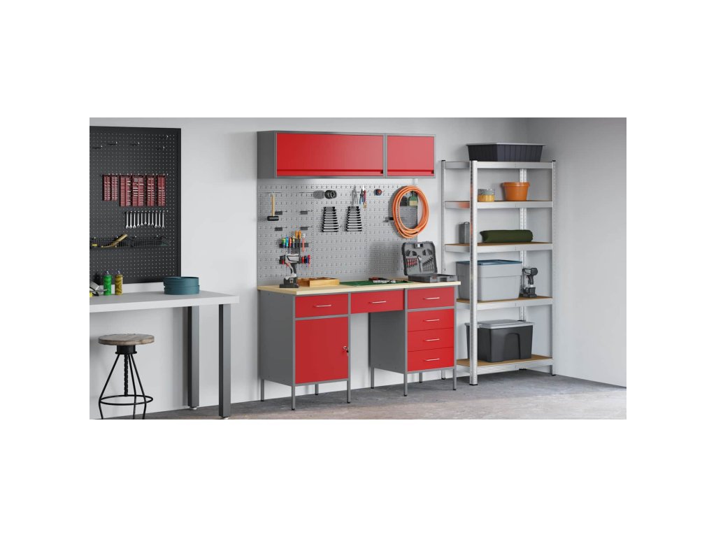 - Doporučené použití: Tenhle kabinetový systém se hodí pro dílny a zdravě vyhovuje jak kutily, tak profesionálům, kteří potřebují uložit nástroje, manuály a další věci přehledným způsobem.