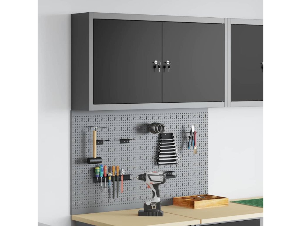 Tahle všestranná nástěnná skříňka na nářadí a souprava desek je nutnost, pokud chcete mít ve své dílně nebo garáži pořádek. S elegantním industriálním designem přináší městský nádech díky práškově lakované ocelové konstrukci a hladkému šedému povrchu. Určená do vnitřních prostor, skříňka skvěle uskladní nářadí, které bude přehledně a snadno dostupné. Integrovaná deska také zvyšuje funkčnost, protože umožňuje přizpůsobit si uspořádání nářadí podle vlastních potřeb.