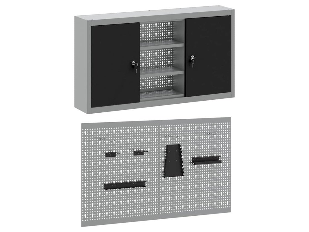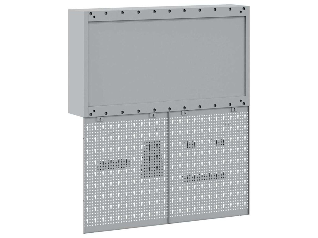 Tahle všestranná nástěnná skříňka na nářadí a souprava desek je nutnost, pokud chcete mít ve své dílně nebo garáži pořádek. S elegantním industriálním designem přináší městský nádech díky práškově lakované ocelové konstrukci a hladkému šedému povrchu. Určená do vnitřních prostor, skříňka skvěle uskladní nářadí, které bude přehledně a snadno dostupné. Integrovaná deska také zvyšuje funkčnost, protože umožňuje přizpůsobit si uspořádání nářadí podle vlastních potřeb.