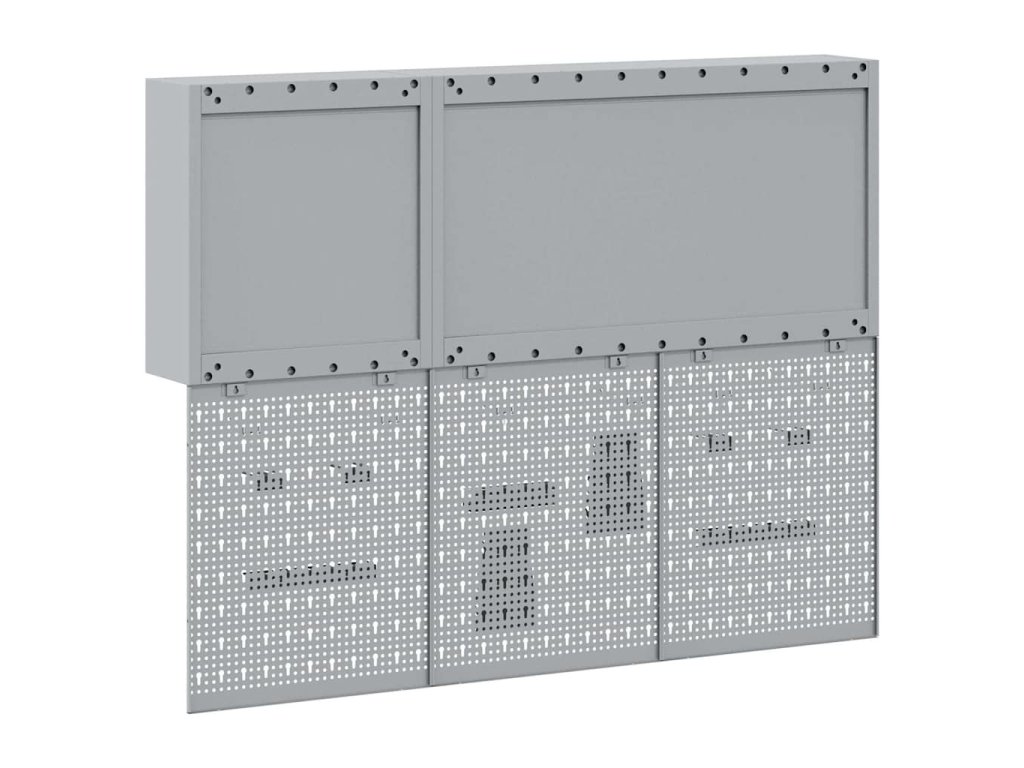 Tahle všestranná nástěnná skříňka na nářadí a souprava desek je nutnost, pokud chcete mít ve své dílně nebo garáži pořádek. S elegantním industriálním designem přináší městský nádech díky práškově lakované ocelové konstrukci a hladkému šedému povrchu. Určená do vnitřních prostor, skříňka skvěle uskladní nářadí, které bude přehledně a snadno dostupné. Integrovaná deska také zvyšuje funkčnost, protože umožňuje přizpůsobit si uspořádání nářadí podle vlastních potřeb.