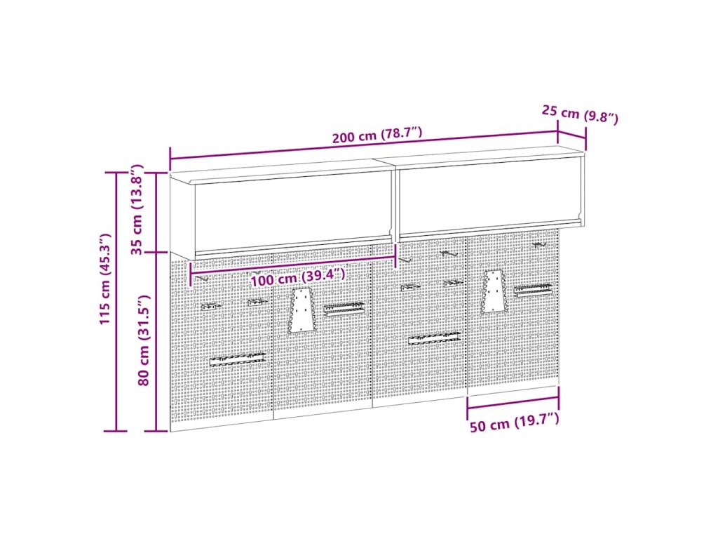 - Celkové rozměry: 200 x 25 x 115 cm (D x Š x V)