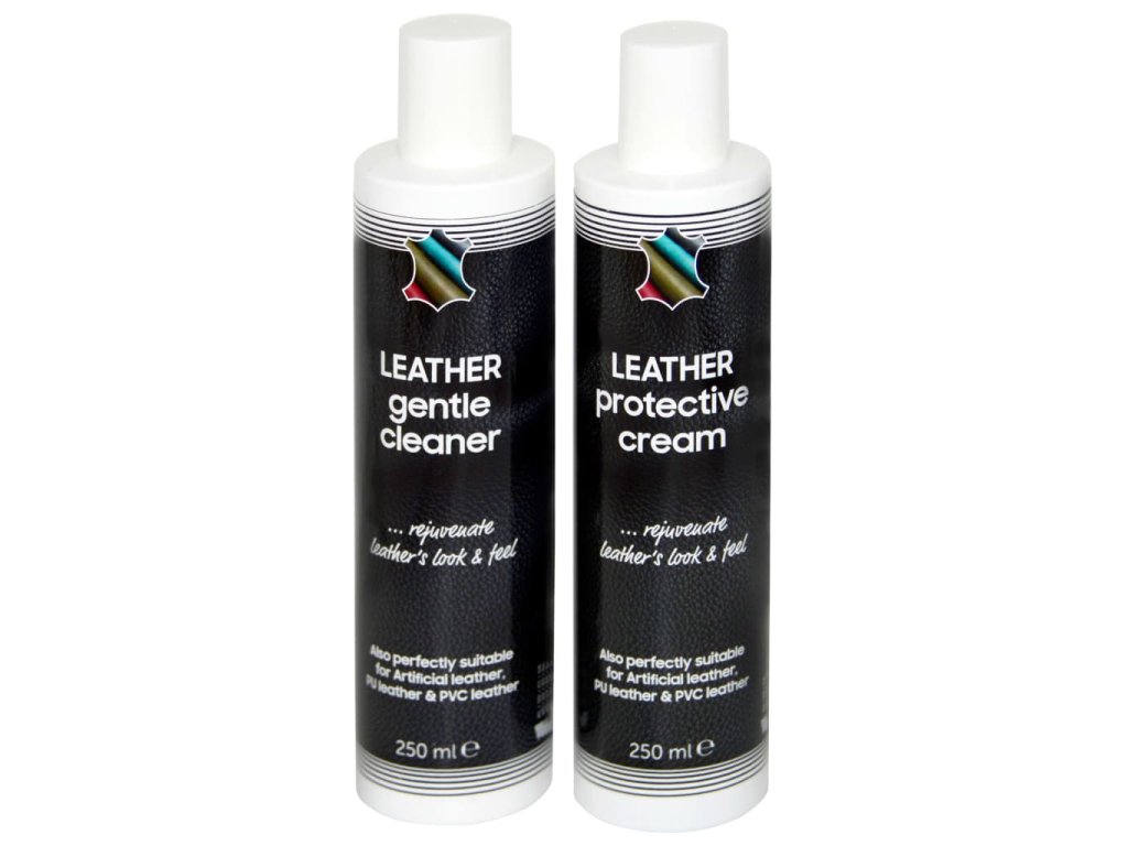Tato sada obsahuje bezpečné přípravky pro čištění a výživu kožených výrobků a jejich ochranu před vlhkostí, tukem, potem, nečistotami a UV zářením. Pravidelná péče udržuje kůži pružnou a prodlužuje její životnost. Přípravky jsou ovšem také vhodné pro péči o umělou kůži / PU kůži a PVC kůži.