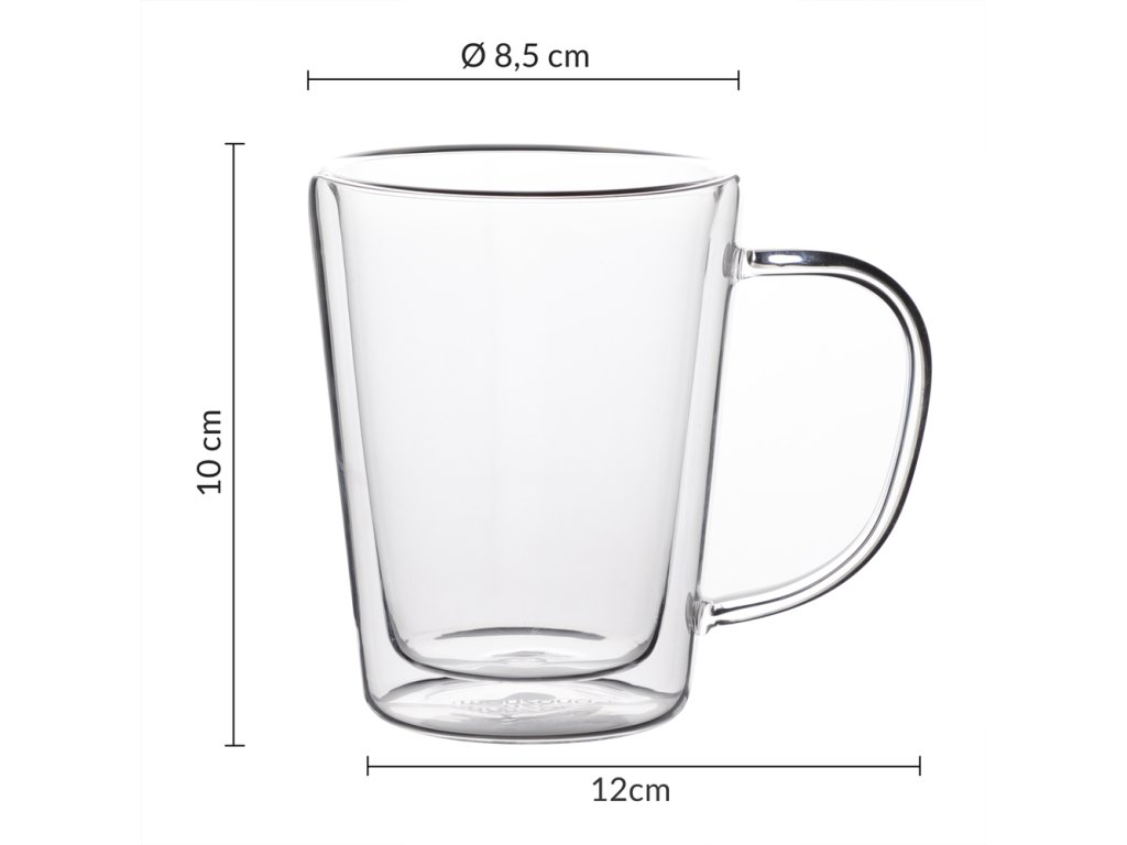 Dvojité stěny z borosilikátového skla zajišťují, že nápoje zůstanou déle teplé nebo studené, aniž by se sklo zahřálo nebo orosilo. Navíc vytváří efektní iluzi levitujícího nápoje, která potěší při každém servírování. Praktický skleněný ouško zajišťuje bezpečné a pohodlné držení.