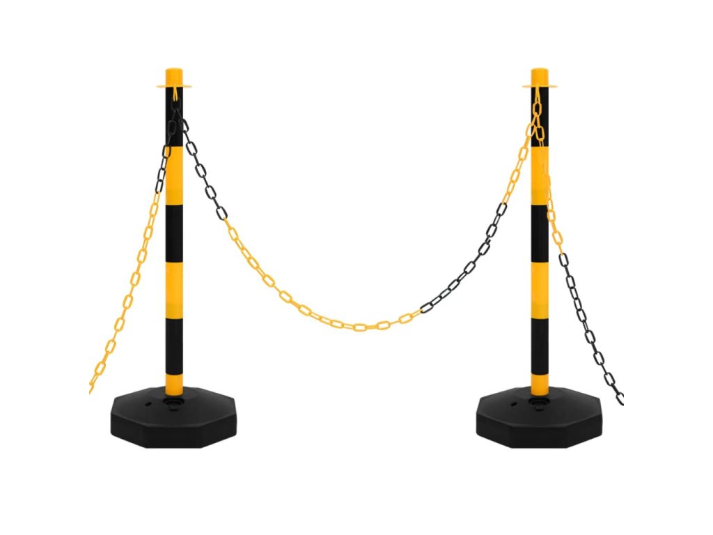 Plastový řetěz o délce 10 m lze snadno připevnit k sloupkům, a vytvořit tak vymezenou oblast. Sada je lehká a snadno přenosná. Pro větší stabilitu můžete základny sloupků naplnit vodou nebo pískem. Sada dopravních sloupků má jasné barvy, je tedy dobře viditelná i při slabém osvětlení.