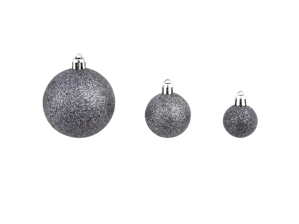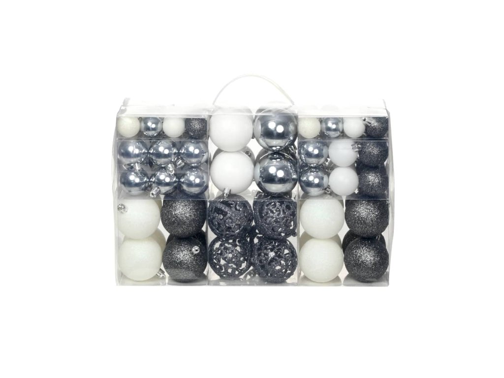 Sada vánočních baněk 100 kusů 3/4/6 cm bílá/šedá 245717