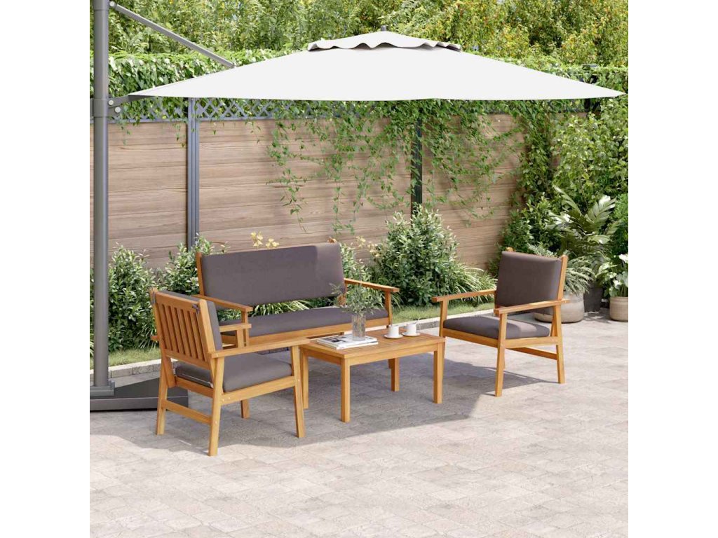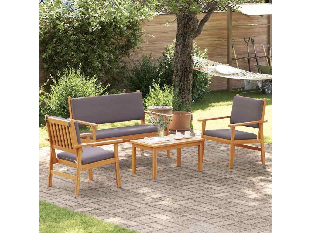 - Materiály: Rám z masivního akáciového dřeva zaručuje odolnost a dodává přírodní vzhled. Toto kvalitní dřevo poskytuje dlouhou životnost pro venkovní užívání a leštěné povrchy zlepšují vzhled vašeho prostoru.