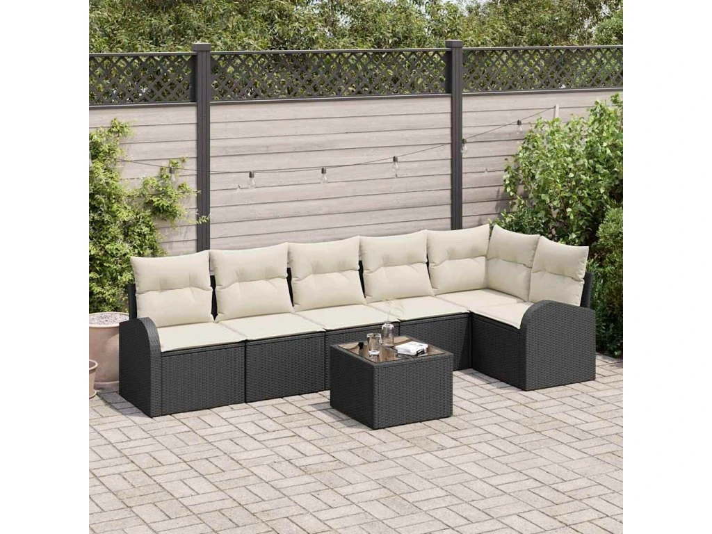 Sada zahradních pohovek 7 pcs Černá a bílá polyratan 3354736