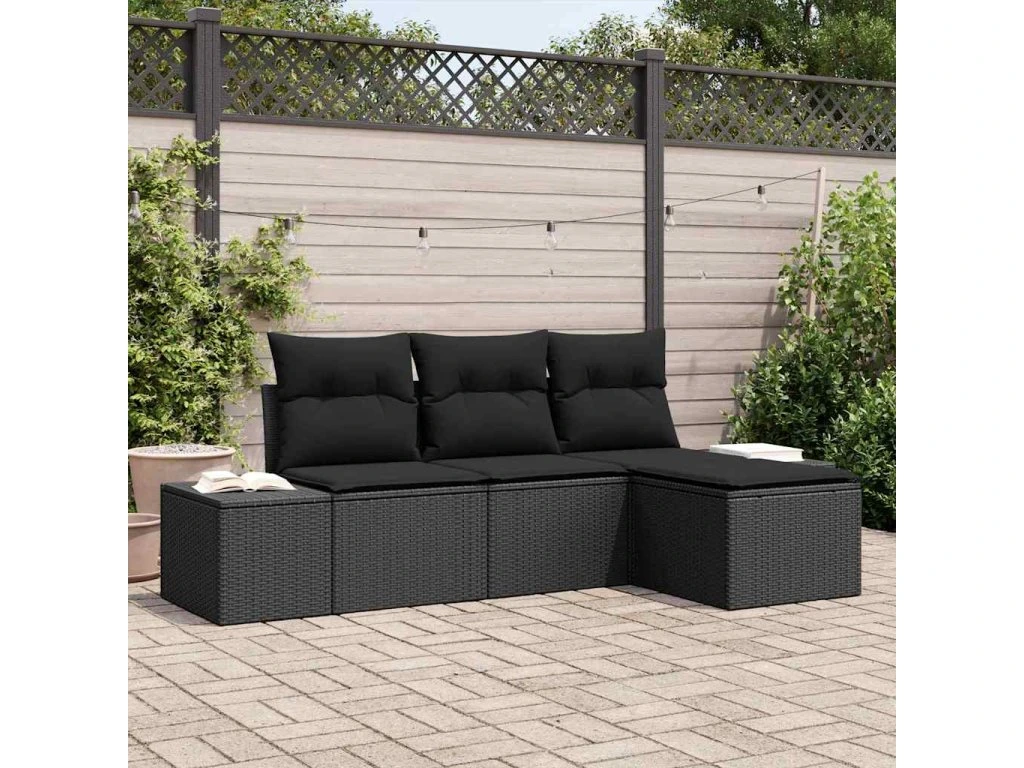 Sada zahradních pohovek s polštářem s úložištěm 4 pcs Černá 3355682