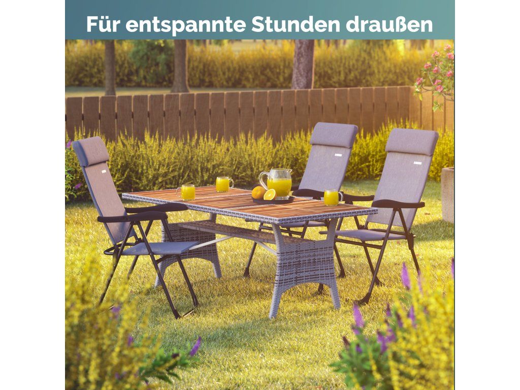 4× skládací zahradní židle s nastavitelnou opěrkou a polštářem