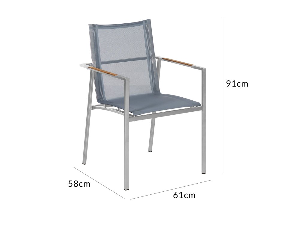 Sada 4 venkovních židlí Monza z nerezové oceli, stohovatelné, šedý prodyšný materiál, ergonomický tvar