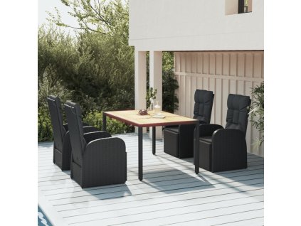 5dílný zahradní jídelní set černý polyratan a masivní akácie 3157608