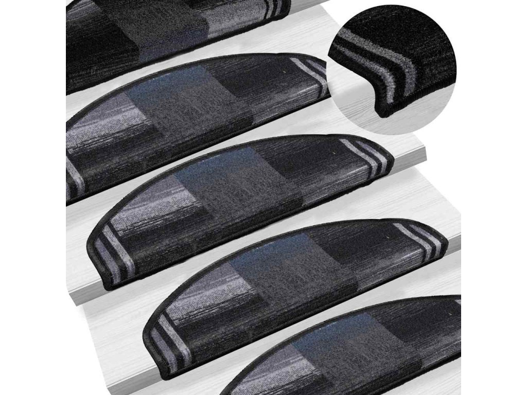 Samolepící nášlapy na schody 15 ks černo-šedé 65 x 21 x 4 cm 322412
