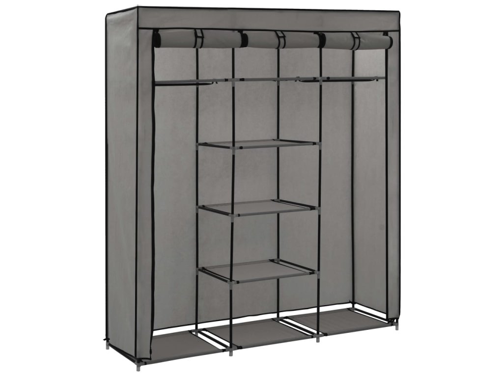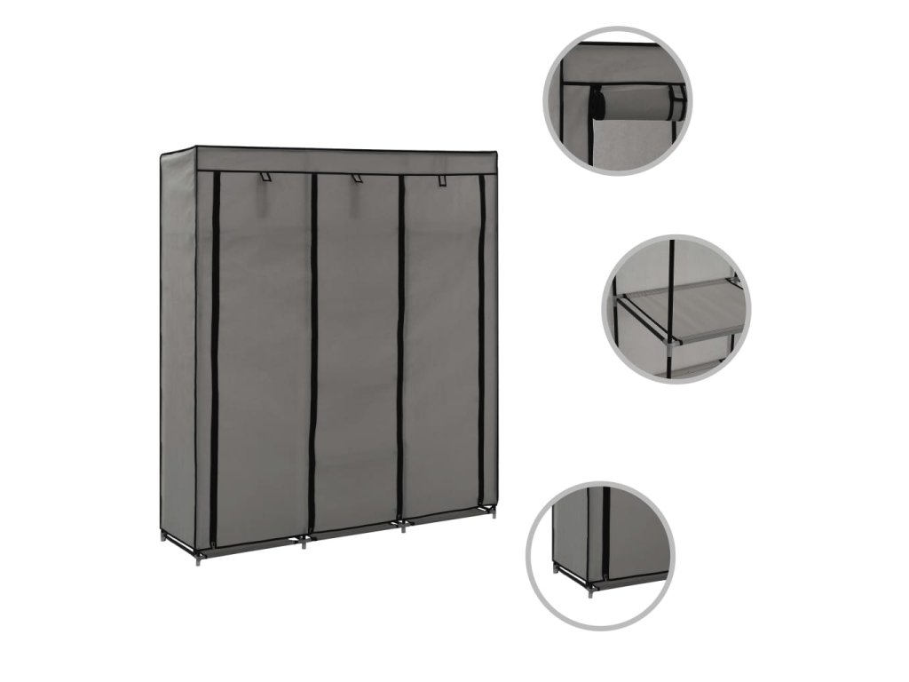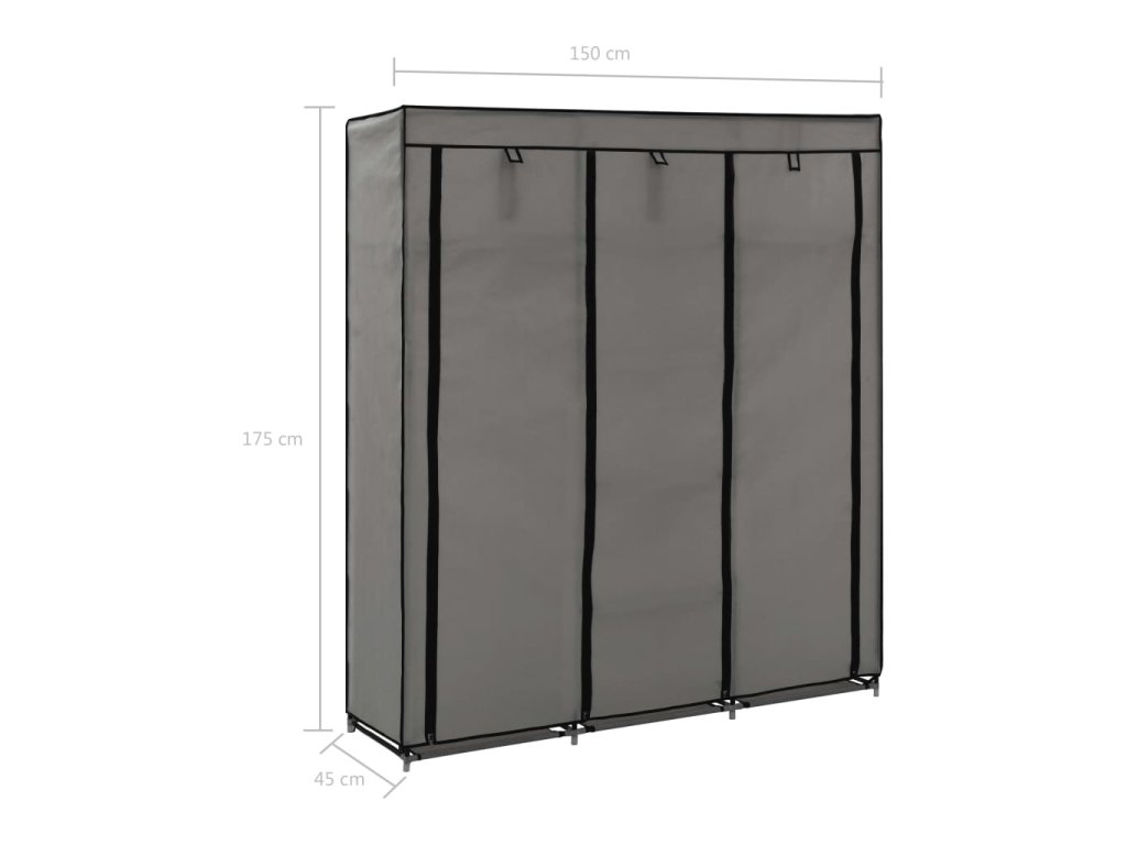 Šatní skříň s přihrádkami a tyčemi šedá 150x45x175 cm textil 282456