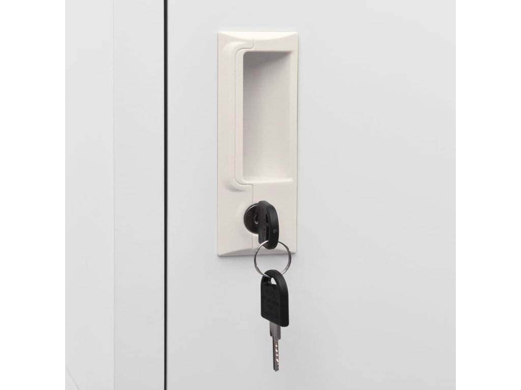 Se 2 přihrádkami s uzamykatelnými dveřmi má tato skříňka dostatek úložného prostoru pro uložení oblečení a dalších věcí. Každá přihrádka je vybavena závěsnou tyčí a držákem na jmenovku. Uzamykatelná skříňka je vyrobena z vysoce kvalitní oceli, proto má dlouhou životnost a snadno se čistí. Sestavení je opravdu snadné.